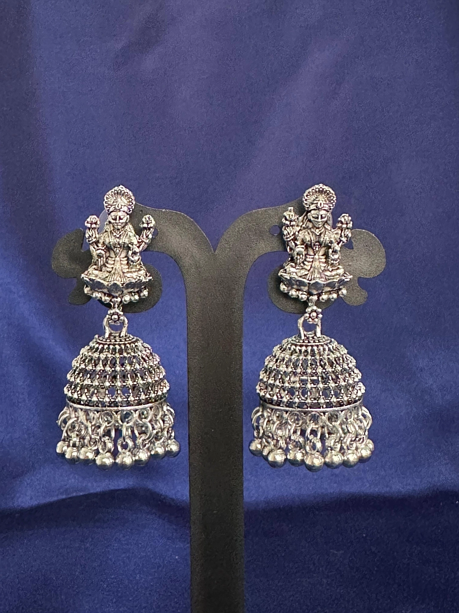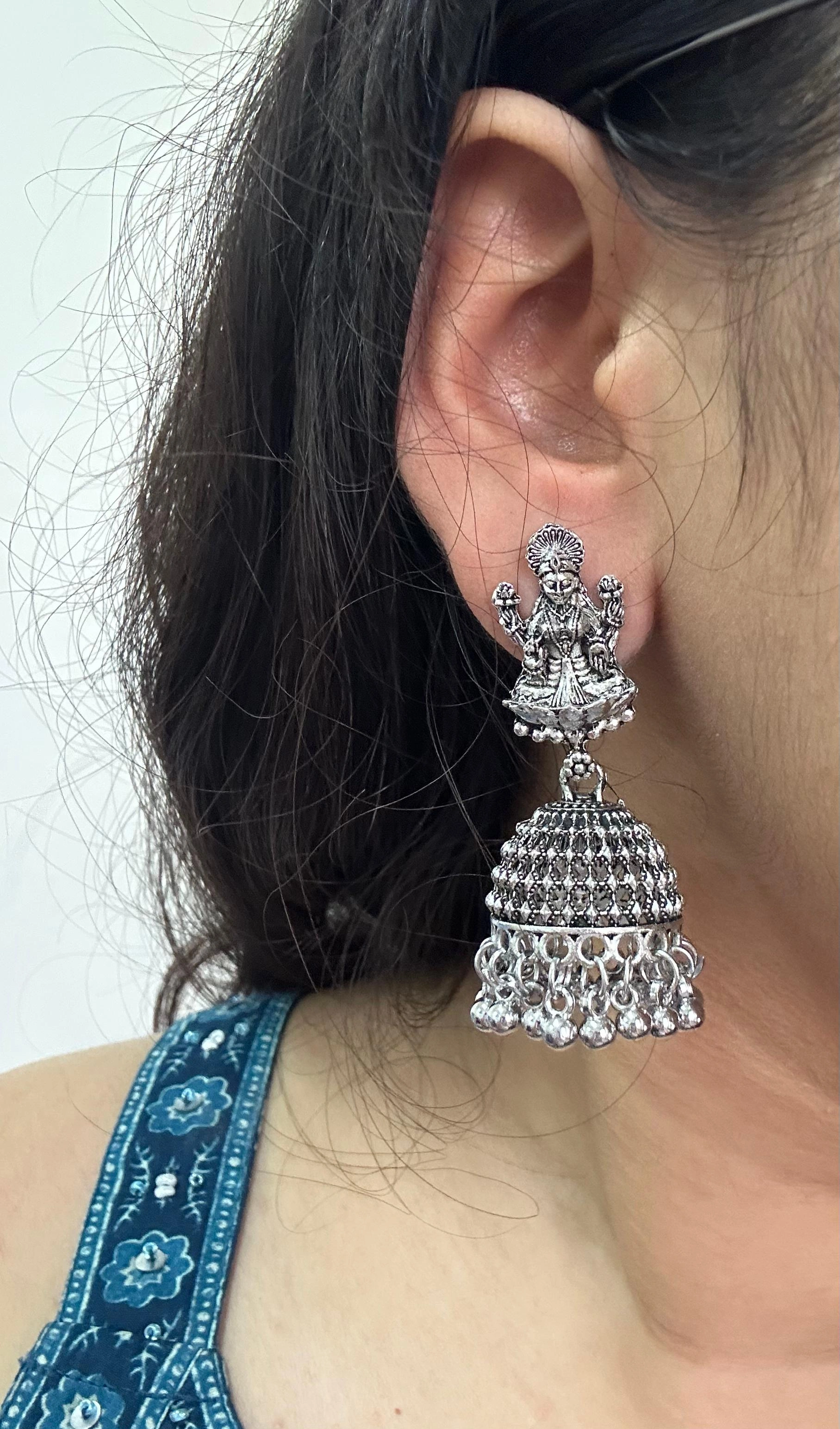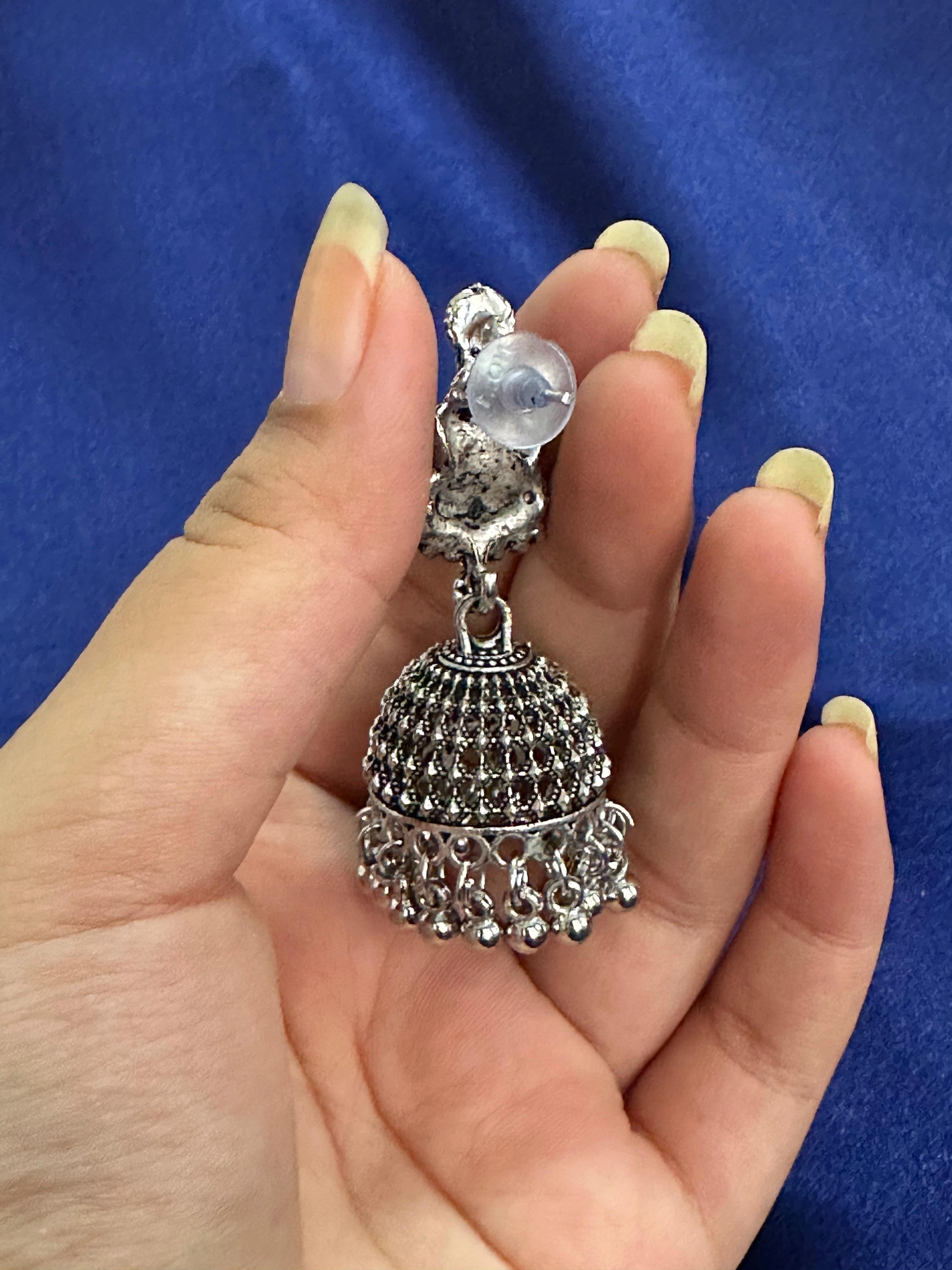 Antique Textured Silver Jhumka Earrings