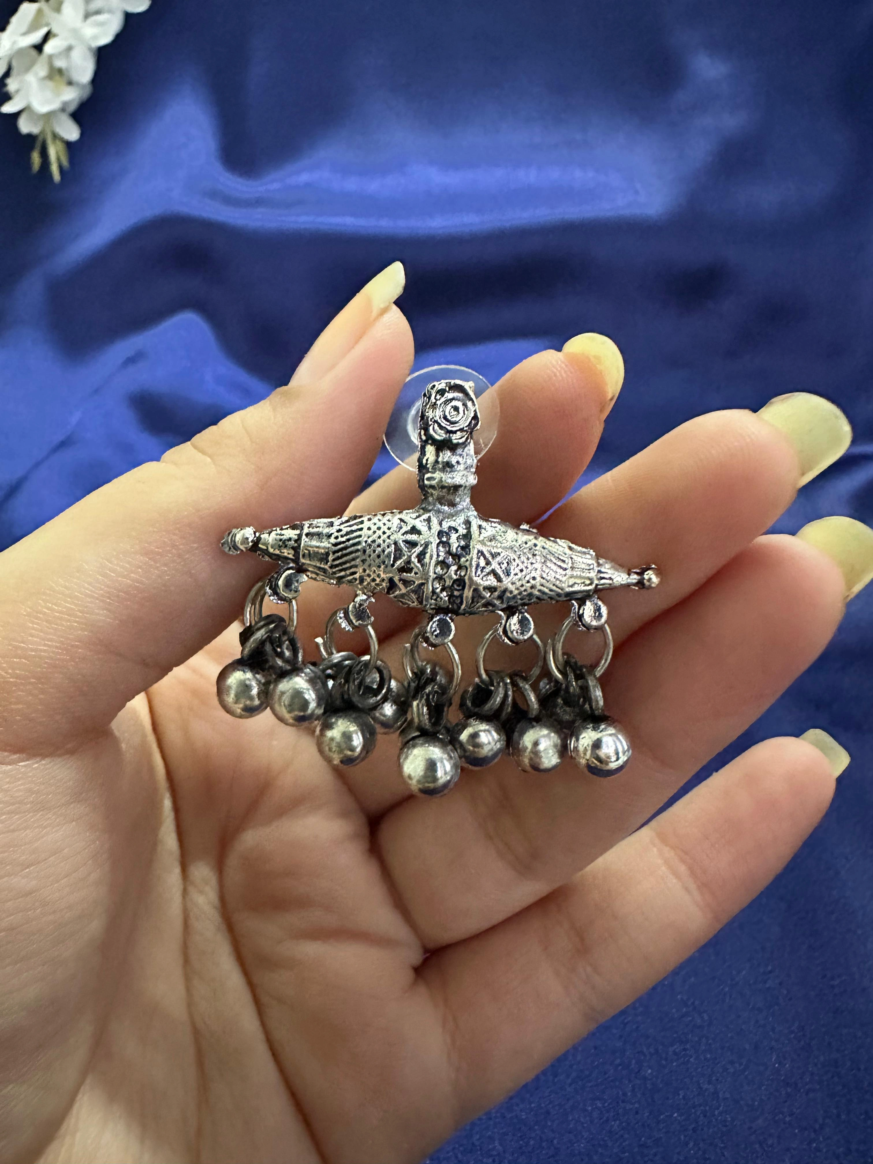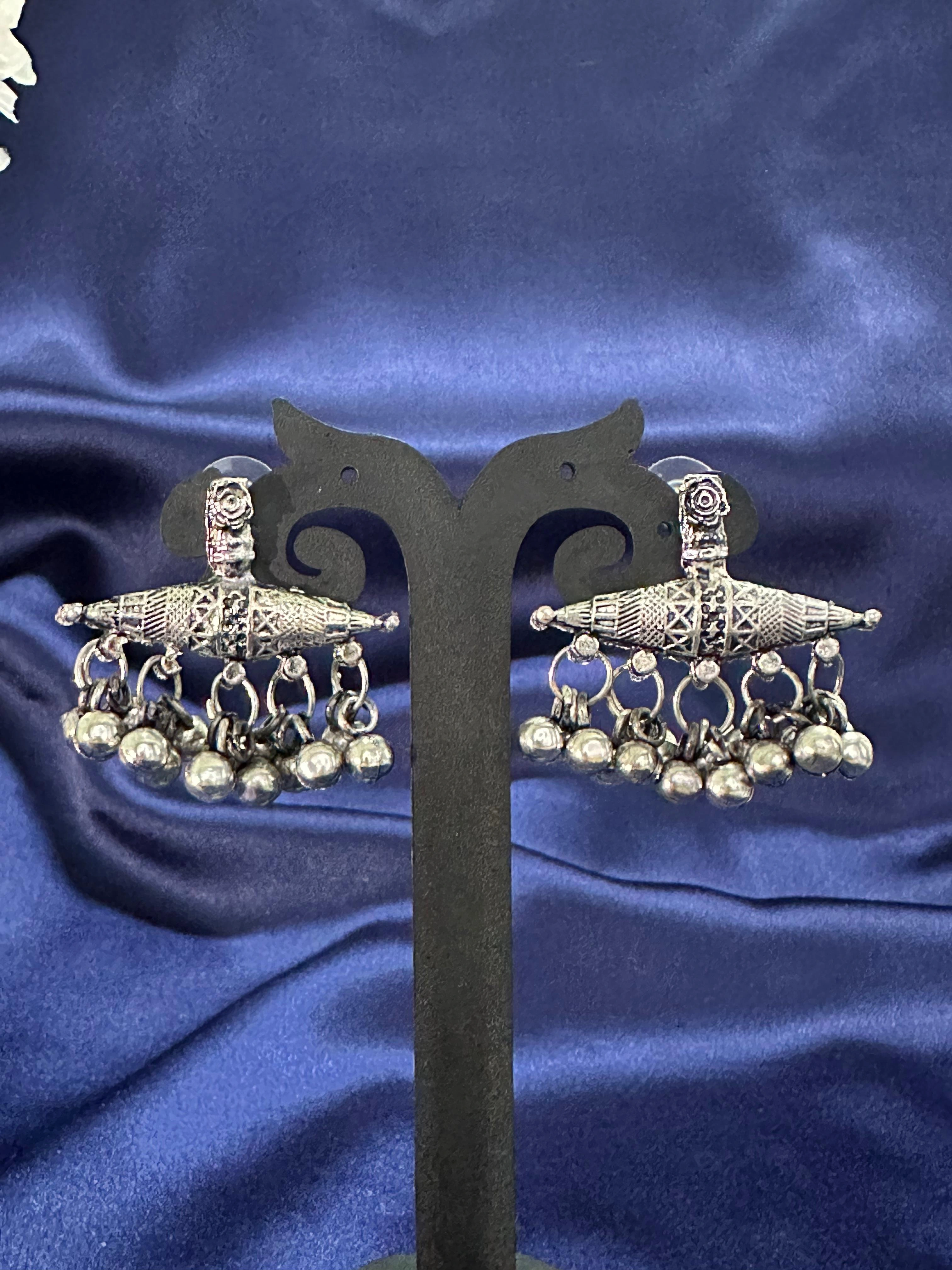Tribal Lattice Ghungroo Danglers